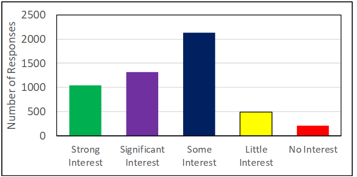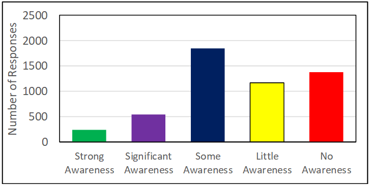 (1 = No interest/awareness, 2 = Little interest/awareness, 3 = Some interest/awareness, 4 = Significant interest/awareness, 5 = Strong interest/awareness)
